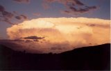 Almost immediately, we headed south to be a little closer to the suspicous lowering. At the same time, I got a call from Rhett Blanch at Cessnock suggesting he had observed the same thing as well as hailstones. You beauty!! The wall cloud basically lost most of its structure but remained as a circular rain free base. The setting sun had illuminated the side shear anvil and some cumulus to the north. "David - look at the overshoot of the storm to the north". After some more video footage and photographs, we called it quits and headed home south along the Putty Road.