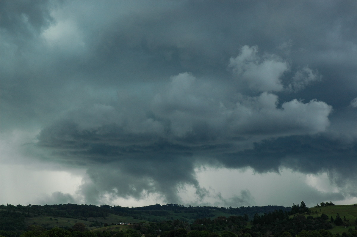 The chase continued NE along the Lismore Bangalow Road to keep ahead of the updrafts. The storm had a severe appearance to it and it was hard to concentrate on the driving while keeping ahead of it, and thinking of good vantage spots.